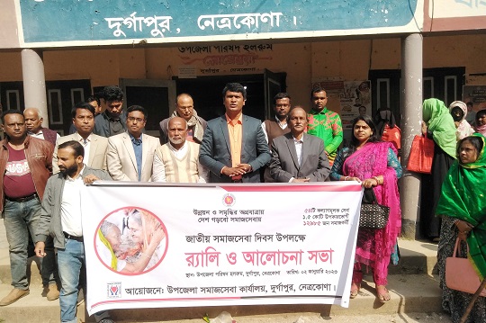 ”উন্নয়ন ও সমৃদ্ধির অগ্রযাত্রায় দেশ গড়বো সমাজসেবায়” এই প্রতিপাদ্যে নেত্রকোনার দুর্গাপুরে উদযাপিত হল জাতীয় সমাজসেবা দিবস।