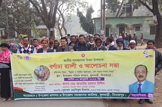 ‘উন্নয়ন ও সমৃদ্ধির অগ্রযাত্রায়, দেশ গড়ব সমাজ সেবায়’ শীর্ষক প্রতিপাদ্যকে সমানে রেখে দিনাজপুরের ফুলবাড়ীতে সোমবার (২ জানুয়ারি) জাতীয় সমাজসেবা দিবস পালন করা হয়েছে।