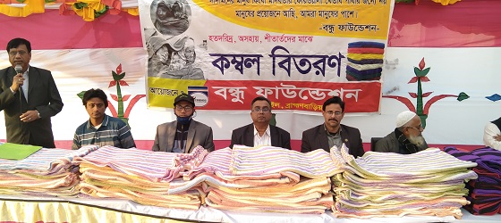 ব্রাহ্মণবাড়িয়ার সরাইলে 'বন্ধু ফাউন্ডেশন' নামের সংগঠনটি দরিদ্র অসহায় শতাধিক নারী পুরুষের হাতে তুলে দিয়েছেন কম্বল। পৌষের কনকনে শীতে শুক্রবার বিকেলে উপজেলা প্রাণি সম্পদ কর্মকর্তার কার্যালয়ের সামনে এই কম্বল বিতরণ করেছেন তারা। ক্বারী মো. জামাল হোসেনের কোরআন তেলাওয়াতের মাধ্যমে সংগঠনের সভাপতি মৃধা মাহবুব এলাহি প্রদ্যুৎ এর সভাপতিত্বে প্রধান অতিথি ছিলেন সরাইল সরকারী কলেজের অধ্যক্ষ মৃধা আহমাদুল কামাল। সংগঠনের উপদেষ্টা জহিরুল ইসলাম রিপনের সঞ্চালনায় বক্তব্য রাখেন- উপজেলা পরিষদের ভাইস চেয়ারম্যান মো. আবু হানিফ, সরাইল প্রেসক্লাবের সভাপতি সভাপতি মো. আইয়ুব খান, তিতাস গ্যাসের ব্যবস্থাপক (অডিট) মো. ফাইজুল ইসলাম বাদল, সরাইল মহিলা কলেজের প্রভাষক ও প্রেসক্লাবের সম্পাদক মোহাম্মদ মাহবুব খান, কালীকচ্ছ পাঠশালা উচ্চবিদ্যালয়ের প্রধান শিক্ষক মো. রফিকুল ইসলাম মানিক, হিফজুল বারী ফয়েজ, সমাজকর্মী রওশন আলী, সংবাদ কর্মী মোমিন, শিবলু, দীপক প্রমূখ। বক্তারা এমন মহতি আয়োজনের জন্য সংগঠনির প্রশংসা করে বলেন, এভাবে অন্যান্য সংগঠনকে সাধ্যমত অসহায় মানুষদের পাশে দাঁড়ানোর চেষ্টা করতে হবে। সহযোগীতার আশ্বাস দিয়ে ছোট করে হলেও মানবসেবা অব্যাহত রাখার আহবান জানান বক্তারা।