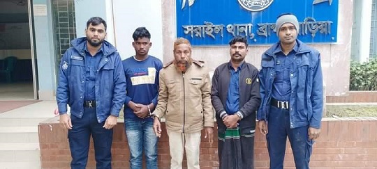 ব্রাহ্মণবাড়িয়ার সরাইলে জনতার সহায়তায় হাতেনাতে ৩ গরূ চোরকে গ্রেপ্তার করেছেন থানার পুলিশ। গত শুক্রবার রাত পোনে ১টার উপজেলার সদর ইউনিয়নের নতুন হাবলী এলাকার ইয়াছিন মিয়ার (২৪) বাড়ি থেকে চুরি করে গরূ নিয়ে যাওয়ার সময় চোরদের গ্রেপ্তার করা হয়। পুলিশ ও ভুক্তভোগিরা জানায়, শুক্রবার রাতে ইয়াছিন মিয়ার বসতবাড়ির গোয়াল ঘরের বেড়া কেটে ভেতরে প্রবেশ করে ৪-৫ জনের একদল চোর। টের পেয়ে ইয়াছিন মিয়ার পরিবারের লোকজন ‘চোর’ ‘চোর’ বলে চিৎকার করতে থাকেন। গোয়াল ঘর থেকে গরূ চুরি করে নিয়ে যাওয়ার সময় একই গ্রামের ফারূক মিয়ার ছেলে মো. ইমন মিয়াকে (২২) আটক করে পুলিশে দেয়। অন্য চোররা পালিয়ে যায়। ইমনের দেয়া তথ্যানুসারে এস আই শরীফুল ইসলামের নেতৃত্বে একদল পুলিশ অভিযান চালিয়ে নতুন হাবলি গ্রামের আজগর আলীর ছেলে রফি আলী (৫০) মো. আরিজ মিয়ার ছেলে মো. আনা মিয়াকে (৩৮) গ্রেপ্তার করেন পুলিশ। সরাইল থানার অফিসার ইনচার্জ (ওসি) মো. আসলাম হোসেন ঘটনার সত্যতা নিশ্চিত করে বলেন, গ্রেপ্তারকৃত তিন চোরের বিরূদ্ধে নিয়মিত মামলা দায়ের করা হয়েছে। তাদেরকে আদালতের মাধ্যমে জেলহাজতে প্রেরণ করা হয়েছে।