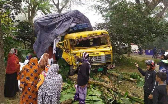 প্রত্যক্ষদর্শী ও নাভারণ হাইওয়ে পুলিশ জানিয়েছে, ভারতে রপ্তানির জন্য ঝুট পরিবহন কারী ট্রাক (ঢাকা মেট্রো ট ১৬-৬২৭৭) এবং যশোরগামী ডাম ট্রাক (ঢাকা মেট্রো ট ২৪৭১৬১) হাজিরালি নামক স্থানে পৌঁছায়। এ সময় একটি ভ্যান রাস্তার ওপর উঠে আসে। উভয় ট্রাক ভ্যান গাড়িকে সাইড দিতে গিয়ে রাস্তার ওপর কাদা থাকায় পিছলে গিয়ে ট্রাক দুটো গাছের সাথে ধাক্কা লাগে। ট্রাক ড্রাইভার বাবু জানান, রাস্তার ওপর ইট ভাটার মাটি পড়ে থাকায় কুয়াশাচ্ছন্ন পরিবেশের কারণে কাদায় পিচ্ছিল হয়ে যায় রাস্তা। ব্রেকেও কোন কাজ করেনি। এজন্য দুটো ট্রাকের বড় ধরনের ক্ষতি হলেও কেউ হতাহত হয়নি। নাভারণ হাইওয়ে পুলিশের দারোগা মফিজুল ইসলাম বলেন - কুয়াশা এবং রাস্তার ওপর কাদা থাকায় দূর্ঘটনাটা ঘটেছে, ট্রাক ক্ষতিগ্রস্ত হলেও কেউ হতাহত হয়নি।