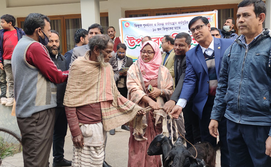 পাবনার চাটমোহরে উপজেলা প্রশাসন ও উপজেলা সমাজসেবা অধিদপ্তরের আয়োজনে ১০ জন ভিক্ষুকের মাঝে ছাগল বিতরন করা হয়েছে। রোববার (১৫ জানুয়ারি) বিকেলে উপজেলা পরিষদ চত্ত্বরে ভিক্ষুক পুনর্বাসন বিকল্প কর্মসংস্থান কর্মসূচির আওতায় এ ছাগল বিতরন করা হয়। প্রধান অতিথি হিসেবে উপস্থিত থেকে ছাগল বিতরন করেন উপজেলা নির্বাহী কর্মকর্তা মোছাঃ মমতাজ মহল। এ সময় উপস্থিত ছিলেন,উপজেলা সমাজসেবা কর্মকর্তা মো রেজাউল করিম,মহিলা বিষয়ক কমকর্তা ফারুক আহমেদ,যুব উন্নয়ন কর্মকর্তা আবদুল হালিম,সহকারী প্রোগামার আব্দুল্লাহ আল নোমান,গুনাহগাছা ইউনিয়ন চেয়ারম্যান রজব আলী বাবলু,ছাইকোলা ইউনিয়ন চেয়ারম্যান নুরুজ্জামান নুরু,ডিবিগ্রাম ইউনিয়ন চেয়ারম্যান শামীম হোসাইন,ইসলামিক ফাউন্ডেশনের ফিল্ড সুপারভাইজার মোঃ মুস্তাফিজুর রহমান,হান্ডিয়াল ইউনিয়ন আওয়ামী লীগের যুগ্ম সম্পাদক রাসেল আহমেদ প্রমূখ। উপজেলা সমাজসেবা কর্মকর্তা মো.রেজাউল করিম জানান,ভিক্ষুক পুর্নবাসন ও বিকল্প কর্মসংস্থান কর্মসূচির আওতায় ১০ জন ভিক্ষুকের মাঝে ৩টি করে ছাগল ও প্রাথমিক খরচ হিসেবে নগদ অর্থ দেওয়া হয়েছে। সরকারের চলমান কর্মসূচি এটি আগামীতে আরো ভিক্ষুকদের এর আওতায় আনা হবে।