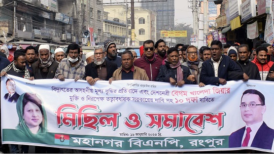 বিদ্যুতের মূল্য বৃদ্ধির প্রতিবাদসহ ১০ দফা দাবীতে রংপুরে বিক্ষোভ মিছিল ও সমাবেশ করেছে মহানগর বিএনপি।