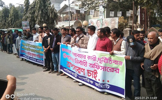 বক্তারা বলেন, সংসদ সদস্য চিকিৎসক মুরাদ হাসান এমপির প্রতিনিধি পৌর কাউন্সিলর সাখাওয়াত আলম মুকুলের সাথে যোগসাজশে ক্ষমতার অপব্যবহার করে নানা অনিয়ম-দুর্নীতিতে জড়িয়ে পড়েছেন উপজেলা নির্বাহী কর্মকর্তা। নদী থেকে অবৈধভাবে বালু উত্তোলন থেকে শুরু করে সরকারি সকল উন্নয়ন বরাদ্দে তার ভাগ রয়েছে। উপজেলা সহকারী কমিশনার (ভূমি) না থাকার সুযোগে জমি খারিজেও তার অংশ রয়েছে। উপজেলা মডেল মসজিদে গত ১৬ জানুয়ারিতে উপজেলা নির্বাহী কর্মকর্তার উপস্থিতিতে ঠিকাদারি প্রতিষ্ঠানের প্রকৌশলীকে মারধরের ঘটনা ঘটলেও কোন ব্যবস্থা নেওয়া হয়নি।