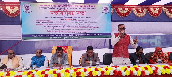 দেশের সকল পৌরসভার কর্মকর্তা-কর্মচারীদের সরকারি কোষাগার থেকে বেতন ভাতা প্রাপ্তি বিষয়ক এক মতবিনিময় সভা শনিবার দুপুরে পাবনার সুজানগর পৌরসভা কার্যালয় অনুষ্ঠিত হয়েছে। বাংলাদেশ পৌরসভা সার্ভিস অ্যাসোসিয়েশন পাবনা জেলা শাখার উদ্যোগে এবং সুজানগর পৌরসভার সহযোগিতায় আয়োজিত ওই সভায় প্রধান অতিথির বক্তব্য রাখেন সুজানগর উপজেলা চেয়ারম্যান মোঃ শাহীনুজ্জামান শাহীন। এতে বিশেষ অতিথির বক্তব্য রাখেন ফরিদপুর পৌর মেয়র খ.ম কামরুজ্জামান মাজেদ, সুজানগর পৌর মেয়র রেজাউল করিম রেজা ও ভাঙ্গুড়া পৌর মেয়র গোলাম হাসনায়েন রাসেল। সভায় প্রধান বক্তা হিসেবে বক্তব্য রাখেন বাংলাদেশ পৌরসভা সার্ভিস অ্যাসোসিয়েশন কেন্দ্রীয় কমিটির সভাপতি আবদুল আলীম মোল্লা। পাবনা জেলা শাখার সভাপতি আবুল কালাম আজাদ দুলালের সভাপতিত্বে এবং সম্পাদক বাবুল হোসেন সরদারের সঞ্চালনায় অনুষ্ঠিত সভায় অন্যান্যের মধ্যে বক্তব্য রাখেন কেন্দ্রীয় কমিটির সহ সাধারণ সম্পাদক জুলফিকার হায়দার বাবু, যুগ্ম সম্পাদক রোকসানা পারভীন, রাজশাহী বিভাগীয় কমিটির সভাপতি মাহমুদুল হাসান, সাধারণ সম্পাদক মতিউর রহমান, পাবনা পৌর সভা সার্ভিস অ্যাসোসিয়েশনের সভাপতি আবদুল লতিফ, ফরিদপুর পৌরসভার সভাপতি শাহাদত হোসেন ও সুজানগর পৌরসভার সাধারণ সম্পাদক মাসুদ রানা। বক্তারা পৌরসভার কর্মকর্তা-কর্মচারীদের দাবির সাথে একাত্মতা ঘোষণা করার পাশাপাশি দাবি বাস্তবায়নে সহযোগিতা করার প্রত্যয় ব্যক্ত করেন।