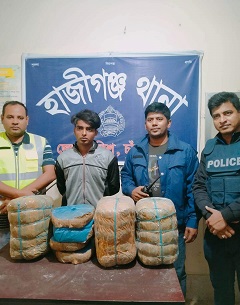 চাঁদপুরের হাজীগঞ্জ থানা পুলিশের মাদক বিরোধী অভিযানে ১৯ কেজি গাঁজা উদ্ধারসহ এক মাদক কারবারি গ্রেপ্তার হয়েছে।