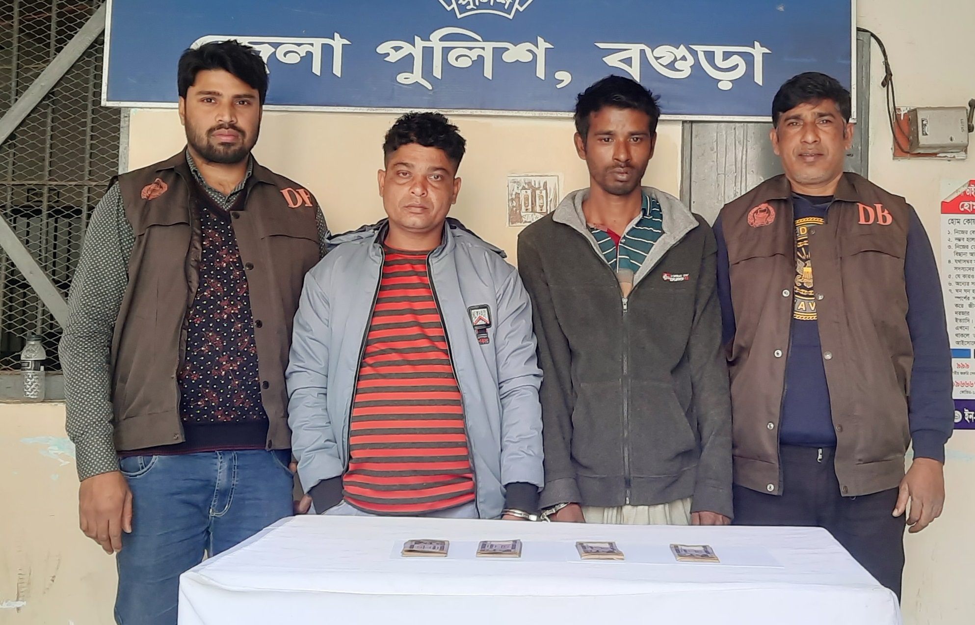 বগুড়া গোয়েন্দা পুলিশ (ডিবির) মাদক বিরোধী অভিযানে গাবতলী উপজেলার সন্ধ্যাবাড়ী মধ্যপাড়াস্থ (ভবের বাজার) এলাকা থেকে ১,০০,০০০ ( এক লক্ষ) জাল টাকা সহ ২ জন আসামি গ্রেপ্তার করা হয়। গ্রেপ্তারকৃত আসামিরা হলেন সন্ধ্যাবাড়ি মধ্যপাড়া এলাকার আবুল কাশেমের ছেলে শহিদ(৩৭) এবং একই উপজেলার জয়ভোগা উত্তরপাড়া গ্রামের মবে মন্ডলের ছেলে সাজু ওরফে সুজা (৩৭)।