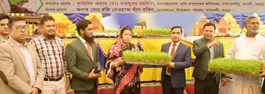 উপজেলা অতিরিক্ত কৃষি কর্মকর্তা মাসুম কবির'র পরিচালনায় উপজেলা কৃষি সম্প্রসারণ কর্মকর্তা পুজা দেবী, বক্তৃতা করেন। শেষে প্রধান অতিথি আধুনিক প্রযুক্তিতে ধান রোপনের মেশিনে চারা রোপন করা পদ্ধতি পরিদর্শন ও কৃষকদের মাঝে ধানের চারা ও সার বিতরণ করেন।