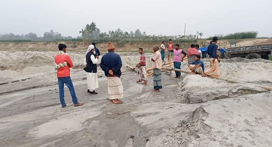 সুষ্ঠু পরিকল্পনা ও ব্যবস্থাপনার অভাবেই পীরগঞ্জ উপজেলার উপর দিয়ে বয়ে যাওয়া করতোয়া নদীতে দিনরাত হরিলুট হয়ে যাচ্ছে বালু। অথচ স্থানীয় প্রশাসন নানা ব্যস্ততার অযুহাতে হাত পা গুটিয়ে বসে আছে দীর্ঘ এক বছর ধরে। উত্তোলিত এই বালু পৃথক কয়েকটি সিন্ডিকেটের মাধ্যমে সরবরাহ দেয়া হচ্ছে নির্মানাধীন ৬ লেন এর মহাসড়কে। এই সিন্ডিকেট নিষিদ্ধ ড্রামট্রাক যোগে এসব বালু সরবরাহের মাধ্যমে প্রতি মাসে হাতিয়ে নিচ্ছেন লাখ লাখ টাকা। উপজেলার পশ্চিমাঞ্চলের সবক’টি সড়কযোগে এই বালু পরিবহন করায় ওই এলাকায় আন্তঃযোগেযোগ বিচ্ছিন্ন হবার পথে। ফেটে ভেঙ্গে ছিন্নভিন্ন হয়ে গেছে এসব সড়ক।“পীরগঞ্জে বালু লুটের মহাযজ্ঞ” শিরোনামে বিভিন্ন পত্রিকায় সংবাদ প্রকাশের পর রংপুরের পীরগঞ্জ উপজেলার চতরা ইউনিয়নের কুয়েতপুর ও পার কুয়েতপুর গ্রামের টোংরারদহ ও ন্যংড়ারঘাট নামক স্থানে সংঘবদ্ধ কয়েকটি চক্র বালু লুটের প্রতিযোগিতায় নেমে পড়েছে। এখানে আনারুল,ওয়াসিম ওসাকিলসহ ৩৪ জন একটি বোমা মেশিন বসিয়ে বালু তুলছে। পাশাপাশি রবিউল,সোহেলসহ ১২ জন মিলে পৃথক ১ টি মেশিনে ,জুয়েলসহ আরও কয়েকজন মিলে পৃথক আরও একটি মেশিন দিয়ে বালু তুলছে। পার কুয়েতপুর নামক স্থানেও কয়েকটি মেশিনে বালু উত্তোলন করা হচ্ছে। এরা এলাকায় প্রভাবশালী। এদের মতো আরও অনেকেই বালু লুটছেন নদী থেকে। এ যেন মিলেমিশে বালু হরিলুটের উৎসব। কেউ প্রতিবাদ করলেই হামলা মামলার শিকার হচ্ছেন। অপরিকল্পিত ভাবে বালু উত্তোলনের ফলে রাস্তা, ঘাট, ফসলী জমি, বাড়ী ঘর ভাঙ্গলেও অসহায় সাধারণ মানুষ। সরেজমিনে পরিদর্শনে দেখা গেছে,পীরগঞ্জের পশ্চিম-দক্ষিন ধার ঘেঁষে চতরা ,বড়আলমপুর ও টুকুরিয়া ইউনিয়নের মধ্য দিয়ে প্রবাহিত করতোয়া নদী। অপরিকল্পিতভাবে বালু উত্তোলন ও ড্রাম ট্রাকে বালু পরিবহনের কারণে পাকা ও কাঁচা রাস্তা ভাঙ্গছে,ভাঙ্গছে ফসলী জমি,বাড়ি ঘর। ফলে জনদুর্ভোগ বাড়ছে। এ যেন এক মগের মুলুক। জোর যার, মুল্লুক তার ! জানা গেছে, রংপুর-দিনাজপুর জেলার পীরগঞ্জ,নবাবগঞ্জ,ঘোড়াঘাটের প্রায় ২৫টি গ্রামের ভিতর দিয়ে বয়ে গেছে করতোয়া নদী। নদীটির তলদেশে বিভিন্ন স্থানে বোমা এবং স্যালোমেশিন বসিয়ে বালু উত্তোলনকারীদের মাঝে অনেকটা প্রতিযোগিতা চলছে বলা চলে। কুয়েতপুর গ্রামের নদীপাড়েই কোটি কোটি টাকা মুল্যের হাজার হাজার ট্রাক বালুর মজুদ করা হয়েছে। নাম প্রকাশে অনিচ্ছুক ভুক্তভোগীরা জানান, বালু তোলার কারণে চতরা ইউনিয়নের কুয়েতপুর -চতরা সড়কের ৩ কিলোমিটার পাকারাস্তা পুরোটাই ভেঙ্গে গেছে। কাঁচা অংশটুকুও ভেঙ্গে চলাচলের অযোগ্য হয়ে পড়েছে। বর্ষা মওসুমে এ রাস্তা দিয়ে যানবাহন তো দুরের কথা মানুষজনও পায়ে হেটে চলাচল করতে পারবে না। চতরা ইউপির চেয়ারম্য