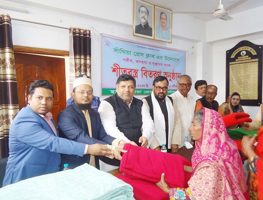 পাবনার সাঁথিয়া প্রেস ক্লাবের উদ্যোগে গরীব,অসহায় ও দুঃস্থদের মাঝে শুক্রবার(৩ ফেব্রুয়ারী)প্রেস ক্লাব কার্যালয়ে শীতবস্ত্র (কম্বল) বিতরণ করা হয়েছে। প্রেস ক্লাবের সভাপতি মানিক মিয়া রানার সভাপতিত্বে ও সাধারণ সম্পাদক আবদুল হাই এর পরিচালনায় বক্তব্য রাখেন,সাঁথিয়া উপজেলা পরিষদের চেয়ারম্যান আব্দুল্লাহ আল মাহমুদ দেলোয়ার,বেড়া পৌর মেয়র ও বেড়া উপজেলা আ.লীগের সভাপতি অ্যাডভোকেট আশিফ শামস রঞ্জন,সাঁথিয়া উপজেলা নির্বাহি কর্মকর্তা মাসুদ হোসেন,সাঁথিয়া উপজেলা সহকারি কমশিনার (ভূমি) মো. মনিরুজ্জাম,সাঁথিয়া উপজেলা আ.লীগের সভাপতি হাসান আলী খান,সাধারণ সম্পাদক তপন হায়দার সান,উপজেলা ভাইস চেয়ারম্যান সোহেল রানা খোকন,সেলিমা সুলতানা শিলা প্রমুখ।