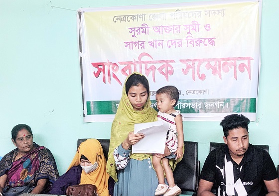 ৪ ফেব্রুয়ারী ২০২৩ শনিবার দুপুরে দুর্গাপুর প্রেসক্লাব মিলনায়তনে উপস্থিত হয়ে তিনি সংবাদ সম্মেলনে লিখিত বক্তব্যে বলেন তার স্বামী সাগর খান পিতা-আমছর আলী,শশারপাড়,উপজেলা-দুর্গাপুর,জেলা-নেত্রকোনা সে প্রয়াত মেয়র আলা উদ্দিন আলাল এর ব্যবসায়ী ফার্মে দৈনিক ভিত্তিতে চাকুরী করতো,সেই সুবাদে মেয়রের স্ত্রী বর্তমান জেলা পরিষদ সদস্য সুরমী আক্তার সুমী সাগর খানের সাথে অবৈধ সম্পর্ক(পরকিয়া’য়)জড়িয়ে পড়ে। বিষয়টি জানতে পাড়ায় আামর স্বামী’র কাছে এর সত্যতা জানতে চাইলে সে হঠাৎ একদিন আমার বাসায় উপস্থিত হয়ে আমাকে বেদম পারপিট করে এবং আমার পিতার কাছ থেকে ৫লক্ষ টাকা এনেদিতে বলে,নইলে আমার সাথে সে সংসার করবেনা বলে সাব জানিয়ে দিয়ে স্থান ত্যাগ করে।