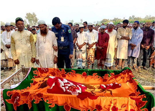 আদেশের পর সোমবার বিকেলে কড়া পুলিশ পাহারায় নওগাঁ কারাগার থেকে তাঁকে উপজেলার নুরুল্লাবাদ ডাঙ্গাপাড়া গ্রামে নিয়ে আসা হয়। এরপর বিকেল পৌণে ৫টার বাবার জানাজায় অংশ নেন তিনি।