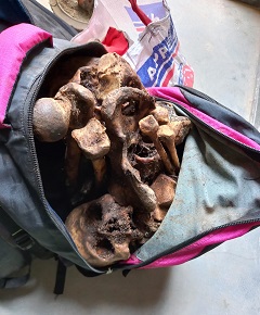 বগুড়ার শেরপুরের ঘোগাব্রীজ এলাকা থেকে মাদকদ্রব্য নিয়ন্ত্রন অধিদপ্তর অভিযান পরিচালনা করে ১ মার্চ সকালে মানুষের কঙ্কাল উদ্ধার করেছে। এ সময় এ সময় রাশেদ (২৪) ও বেলাল (২৮) নামের দুইজন কে আটক করে থানায় সোপর্দ করা হয়েছে। জানা যায়, জানা যায়, জামালপুর জেলার দেওয়ানগঞ্জ উপজেলার পশ্চিম গামারিয়া গ্রামের মনু মিয়ার ছেলে রাশেদ ও মৃত রশিদের ছেলে বেলাল হোসেন দীর্ঘদিন ধরে মানুষের কঙ্কাল চুরি করে বিক্রি করছিল। ১ মার্চ সকাল সাড়ে ৯ টার দিকে মানুষের কঙ্কাল চুরি করে ঢাকা যাওয়ার খবর পেয়ে বগুড়া মাদকদ্রব্য নিয়ন্ত্রন অধিদপ্তর অভিযান চালিয়ে শেরপুর উপজেলার ভবানীপুর ইউনিয়নের ঘোগাব্রীজ এলাকা থেকে মানুষের কঙ্কাল উদ্ধার করে এবং রাশেদ ও বেলাল কে আটক করে শেরপুর থানায় সোপর্দ করেন। এ ব্যাপারে শেরপুর থানার অফিসার ইনাচর্জ মো. আতাউর রহমান খোন্দকার বলেন, মানুষের কঙ্কাল উদ্ধার করা হয়েছে। আটককৃতদের বিরুদ্ধে আইনি প্রক্রিয়া চলমান রয়েছে।