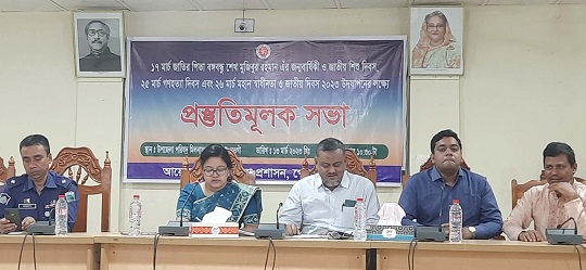 নওগাঁর পোরশায় বঙ্গবন্ধু শেখ মুজিবুর রহমান এর জন্মবার্ষিকী ও জাতীয় শিশু দিবস, গণহত্যা দিবস এবং মহান স্বাধীনতা দিবস ও জাতীয় দিবস উদযাপনের লক্ষ্যে প্রস্তুতিমুলক সভা অনুষ্ঠিত হয়েছে। সোমবার উপজেলা প্রশাসনের আয়োজনে উপজেলা পরিষদ মিলনায়তনে অনুষ্ঠিত সভায় সভাপতিত্ব করেন ইউএনও সালমা আক্তার। এ সময় উপজেলা পরিষদ চেয়ারম্যান অধ্যক্ষ শাহ্ মঞ্জুর মেরশেদ চৌধুরী, ভাইস চেয়ারম্যান কাজীবুল ইসলাম, কৃষি কর্মকর্তা সঞ্জয় কুমার সরকার, থানা অফিসার ইনচার্জ জহুরুল ইসলাম, ১৬বিজিবি নিতপুর ক্যাম্পের কোম্পানি কমান্ডার আবদুল আজিজ সহ বিভিন্ন দপ্তরের কর্মকর্তাবৃন্দ উপস্থিত ছিলেন।