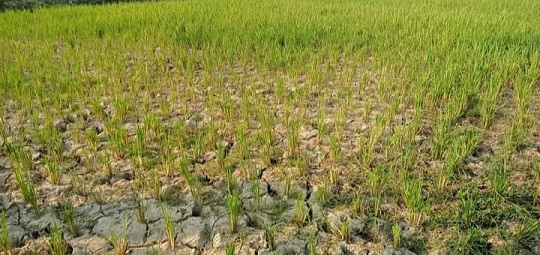 টানা ২ মাস বৃষ্টি নেই। বৃষ্টি না থাকায় নেত্রকোনার কলমাকান্দা উপজেলা সদরের নদী নালা খাল বিল পুকুর ডোবাসহ শুকিয়ে গেছে। ফলে বোরো আবাদি ফসলি জমি ফেটে চৌচির হয়ে যাচ্ছে। উৎপাদন ঘাটতির আশংঙ্কা। আবাদি জমির সেচ কাজ ব্যাহত হচ্ছে চরমভাবে এবং নদী নালার পানি শুকিয়ে যাওয়ায় পানির স্তরও নিচে নেমে গেছে। ফলে এ উপজেলার ও প্রত্যন্ত অঞ্চলের ইরিব্লকের টিউবওয়েলের পানি না উঠায় সংশ্লিষ্ট সকল আবাদি জমির সেচ ব্যাহত হচ্ছে। পাশাপাশি অনাবৃষ্টিতে মাটির রস কমে যাওয়ায় আমের মুকুল ঝরে পড়ছে। এ ছাড়াও বোরো ধানের বীজতলাসহ অন্যান্য ফসল ও সবজি নষ্ট হয়ে যাচ্ছে, কৃষকেরা পড়ছে চরম দূর্ভোগে। বিপাকে পরেছেন এই উপজেলা কৃষকরা। এ ছাড়াও নদী নালা খাল বিলের পানি শুকিয়ে যাওয়ার কারণে ছোট ছোট নদী বেস্টিত এলাকা শত শত জেলে ও মাঝিরাও কর্মহীন হয়ে পড়েছে। এ বিষয়ে সদর ইউনিয়নের বাসাউড়া গ্রামের আদর্শ কৃষক প্রদীপ সাহা ও সবিনয় রায় বলেন, নদীর পানির স্তর নিচে নেমে যাওয়া বাড়ীর পাশে খাল পুকুর সব শুকিয়ে যাওয়ায় মহা বিপদে আছি ভাই, একটু বৃষ্টি যদি হতো এই জমিগুলো প্রাণ ফিরে পেতো। গণমাধ্যমের সাথে কথা হয় আলাল মিয়ার সাথে তিনি বলেন, প্রতি বছর ন্যায় ফসলের ক্ষেতে টিউবওয়েল স্হাপন করে পানি তুলে সেচ কাজে ব্যবহার করতে পারছি না। কারণ পানির স্হর নিচে নেমে যাওয়ার কারণে অনেক সমস্যায় মধ্যে পড়ছি আমরা এ থেকে পরিত্রাণের কোন উপায় খুঁজে পাচ্ছি না, এ বিষয় কথা হয় উপজেলা কৃষি অফিসার মোঃ ফারুক সাহেবের সাথে তিনি বলেন, আবাদি জমি সংলগ্ন এলাকা এখানে পানির সাথে স্হানীয় খাল বিল পুকুর ডোবার পানির স্হরের কম বেশীর একটি মিল আছে। নদীর পানি কমে যাওয়ায় সেচ প্রকল্পেও ব্যাহত হচ্ছে।