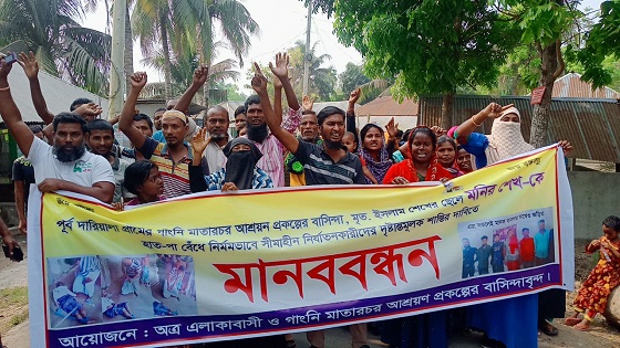 বাগেরহাটের মোল্লাহাটে গাংনী মাতারচর আশ্রয়ণ প্রকল্পের বাসিন্দা মনির শেখ'কে চোর সন্দেহে হাত-পা বেঁধে নির্মমভাবে সীমাহীন নির্যাতনকারীদের দৃষ্টান্তমুলক শাস্তির দাবিতে মানববন্ধন ও বিক্ষোভ মিছিল অনুষ্ঠিত হয়েছে। শনিবার সকাল সাড়ে ৯ টায় নগরকান্দি সপ্তপল্লী মাধ্যমিক বিদ্যালয় মাঠে এলাকাবাসী ও মাতারচর আশ্রয়ণ প্রকল্পের বাসিন্দাদের আয়োজনে এ মানববন্ধন ও বিক্ষোভ মিছিল অনুষ্ঠিত হয়। মানববন্ধনে মনির শেখকে নির্মমভাবে নির্যাতনের বিচারের দাবি জানিয়ে বক্তব্যদেন মাতারচর আশ্রয়ণ প্রকল্পের সভাপতি উচমান খাকী, চরদারিয়ারা আশ্রয়ণ প্রকল্পের সভাপতি শামীম শেখ, মনিরের বড়ভাই মামলার বাদী জাহিদুল শেখ।