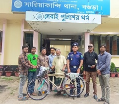 ১৯৮৬ সাল থেকে বগুড়া সারিয়াকান্দিতে পত্রিকা বিক্রয় করেন বগুড়া সদরের গোকুল ইউনিয়নের ফিরোজ আলম। প্রতিদিন তিনি সকালে গোকুল থেকে বগুড়া সাথমাথায় আসেন পত্রিকা নিতে। সেখান থেকে পত্রিকা সংগ্রহ করে ২২ কিঃমিঃ দূরে সারিয়াকান্দি উপজেলা সদরের বিভিন্ন এলাকায় পত্রিকা বিলি করেন পাঁয়ে হেঁটে। বিষয়টি নজরে আসে সারিয়াকান্দি থানার ভারপ্রাপ্ত কর্মকর্তা রাজেশ কুমার চক্রবর্তীর। পরে তিনি রোববার দুপুরে স্হানীয় গণমাধ্যম কর্মীদের সহায়তায় ফিরোজকে একটি বাইসাইকেল ক্রয় করে দেন। এতে পত্রিকা বিক্রেতা ফিরোজের চোখেমুখে ফুটে উঠেছে হাসির ছাপ। ফিরোজ আলম বলেন, প্রায় ৩৭ বছর আগে থেকে আমি সারিয়াকান্দিতে পত্রিকা বিলি করে আসছি। ৮৮ সালের বন্যায় একবুক পানি পাড়ি দিয়েও মানুষের দাঁড়ে পত্রিকা নিয়ে হাজির হয়েছি। পায়ে হেঁটে পত্রিকা বিলি করার প্রধান সমস্যা ছিল, অনেকগুলো পত্রিকার অত্যধিক ওজন। এই সাইকেলটি আমার চির ভোগান্তির অবসান করবে। আমার আর পায়ে হেঁটে পত্রিকা বিলি করা লাগবে না। এতে আমি খুবই খুশি হয়েছি। সারিয়াকান্দি থানার ভারপ্রাপ্ত কর্মকর্তা রাজেশ কুমার চক্রবর্তী বলেন, পায়ে হেঁটে পত্রিকা বিলি করতে দেখে অসহায় পত্রিকা বিক্রেতাকে সহযোগিতা করার চিন্তা আমার মাথায় আসে। সে চিন্তা থেকে স্হানীয় গণমাধ্যম কর্মী এবং গণ্যমান্য ব্যক্তিবর্গের সহযোগিতায় তাকে এই সামান্য সহযোগিতা করা হয়েছে।