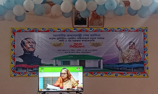 রংপুরের পীরগঞ্জে জাতির জনক বঙ্গবন্ধু শেখ মুজিবুর রহমানের কন্যা মাননীয় প্রধানমন্ত্রী শেখ হাসিনা জমিসহ আশ্রয়ণ প্রকল্প ২-এর অধীনে চতুর্থ পর্যায়ের ৪৫ টি নির্মাণকৃত সরকারি বাসগৃহ হস্তান্তর কার্যক্রমের উদ্বোধন করেন। গতকাল এসব পরিবার তাদের স্বপ্নের ঠিকানায় উঠেছেন। বুধবার রংপুরের পীরগঞ্জ উপজেলার অডিটোরিয়াম হলরুমে ভিডিও কনফারেন্সের মাধ্যমে এসব ঘর হস্তান্তর উদ্বোধন করেন প্রধানমন্ত্রী। বঙ্গবন্ধু কন্যা প্রধানমন্ত্রী শেখ হাসিনার প্রতিশ্রুতি আশ্রয়ণ প্রকল্পের সুষ্ঠু বাস্তবায়িত 'ক' শ্রেণির চতুর্থ পর্যায়ের ঘরগুলো ভূমি ও গৃহহীন পরিবারের লোকজন গুলো খুশি। অন্যদিকে বন্দোবস্তকৃত খাঁস জমির কবুলিয়তসহ সরকারি খরচে নির্মিত সেমিপাকা বাসগৃহ পেয়ে দীর্ঘদিনের স্বপ্ন পূরণ হওয়ায় আনন্দের হাওয়া বইছে সুবিধাভোগীদের মাঝে। প্রধানমন্ত্রীর উপহার ঘর উদ্বোধনী অনুষ্ঠানে উপস্থিত ছিলেন,পীরগঞ্জ উপজেলা চেয়ারম্যান নুর মোহাম্মদ মন্ডল, উপজেলা ভাইস চেয়ারম্যান শফিউল ইসলাম মন্ডল মিলন, রওশন আরাবেগম রিনা, উপজেলা নির্বাহী কর্মকর্তা বিরোদা রানী রায়,উপজেলা আওয়ামী লীগের সভাপতি নুরুল আমিন রাজা, পীরগঞ্জ থানার অফিস ইনচার্জ জাকির হোসেন, প্রকল্প বাস্তবায়ন কর্মকর্তা মিজানুর রহমান, উপজেলা প্রকৌশলী মশিউর রহমান, উপজেলা কৃষি কর্মকর্তা সাদেকুজ্জামান সরকার, সমাজ সেবা অফিসার আরিফুর রহমান, সিনিয়র মৎস্য অফিসার আমিনুল ইসলামসহ চতরা ইউপি চেয়ারম্যান এনামুল হক শাহীন, টুকুরিয়া ইউপি চেয়ারম্যান আতাউর রহমান মন্ডল, ও ভেন্ডাবাড়ী ইউপি চেয়ারম্যান ছাদেকুল ইসলাম।