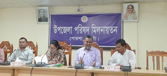 নওগাঁর পোরশায় উপজেলা পরিষদ সমন্বয় সভা অনুষ্ঠিত হয়েছে। মঙ্গলবার উপজেলা পরিষদ মিলনায়তনে অনুষ্ঠিত সভায় সভাপতিত্ব করেন উপজেলা পরিষদ চেয়ারম্যান অধ্যক্ষ শাহ্ মঞ্জুর মোরশেদ চৌধুরী। অপরদিকে আইন শৃংখলা বিষয়ক সভা অনুষ্ঠিত হয়েছে। এতে সভাপতিত্ব করেন ইউএনও সালমা আক্তার। সভায় বিভিন্ন দপ্তরের কার্যক্রম ও আইন শৃংখলা বিষয়ে আলোচনা ও সিদ্ধান্ত গ্রহণ করা হয়। এসময় ভাইস চেয়ারম্যান কাজীবুল ইসলাম, স্বাস্থ্য ও পরিবার পরিকল্পনা কর্মকর্তা ডাঃ তৌফিক রেজা, অফিসার ইনচার্জ (তদন্ত) শাহ্ আলম সরদার সহ কর্মকর্তাবৃন্দ উপস্থিত ছিলেন।