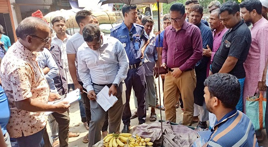 কেশবপুরে বাজারদরের চেয়ে পাকা কলার দাম বেশি রাখায় শহরের মধুসড়ক এলাকার কলা ব্যবসায়ী আবু সাঈদকে ৫ হাজার জরিমানা করেছে ভ্রাম্যমাণ আদালত। বুধবার দুপুরে উপজেলা নির্বাহী কর্মকর্তা ও নির্বাহী ম্যাজিস্ট্রেট এম এম আরাফাত হোসেন ভ্রাম্যমাণ আদালত পরিচালনা করে ওই জরিমানা করেন।