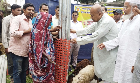 নওগাঁর ধামইরহাটে ক্ষুদ্র নৃ-গোষ্ঠী সম্প্রদায়ের ৪শত পরিবারের মাঝে ভেড়া বিতরণ করা হয়েছে। ৩০ মার্চ বেলা ১১ টায় উপজেলা অডিটোরিয়ামে সমতল ভূমিতে বসবাসরত অনগ্রসর ক্ষুদ্র নৃ-গোষ্ঠির আর্থ সামাজিক ও জীবন মানোন্নয়নের লক্ষে সমন্বিত প্রাণি সম্পদ উন্নয়ন প্রকল্পের আওতায় ৮টি ইউনিয়ন ও ১টি পৌরসভারসহ মোট ৪শত পরিবারে ভেড়া বিতরণ করেন জাতীয় সংসদের আইন বিচার ও সংসদ বিষয়ক মন্ত্রনালয়ের সংসদীয় স্থায়ী কমিটির সভাপতি মো. শহীদুজ্জামান সরকার এম.পি। এ উপলক্ষে ইউএনও মো. আরিফুল ইসলামের সভাপতিত্বে ভেড়া বিতরণ অনুষ্ঠানে স্বাগত বক্তব্য রাখেন উপজেলা প্রাণিসম্পদ অফিসার কৃষিবিদ ডা. মো. ফরহাদ হোসেন, বিশেষ অতিথির বক্তব্য রাখেন উপজেলা চেয়ারম্যান মো. আজাহার আলী, ভাইস চেয়ারম্যান সোহেল রানা, ওসি মোজাম্মেল হক কাজী, উপজেলা প্রকৌশলী মো. সুমন মাহমুদ, কৃষি অফিসার তৌফিক আল জুবায়ের, মৎস্য কর্মকর্তা আইয়ুব আলী, যুব উন্নয়ন অফিসার কামরুজ্জামান সরদার, মহিলা বিষয়ক অফিসার মিজানুর রহমান, ভারপ্রাপ্ত সমাজসেবা অফিসার এটিএম ফসিউল আলম, ভারপ্রাপ্ত পরিবার পরিকল্পনা অফিসার মো. বেদারুল ইসলাম, ইউপি চেয়ারম্যান এটিএম বদিউল আলম, ওবায়দুল হক সরকার, গোলাম কিবরিয়া, মাহফুজুল আলম লাকী প্রমুখ। অনুষ্ঠানে ৪শত পরিবারের প্রত্যেককে ২টি করে ভেড়া, বাসস্থানের জন্য দুইটি ঢেউটিন, ৫টি প্লাস্টিকের মাচা ৪টি আরসিসি পিলার ও খাদ্য সামগ্রী হিসেবে ২৭ কেজি দানাদার খাদ্য প্রদান করা হয়। উপজেলা প্রাণি সম্পদ অফিসার কৃষিবিদ ডা. মো. ফরহাদ হোসেন জানান, প্রকল্পের দ্বারা সমন্বিত পদ্ধতিতে প্রাণিসম্পদ উৎপাদন ব্যবহারের মাধ্যমে সমতল অঞ্চলের অনগ্রসর ক্ষুদ্র নৃ-গোষ্ঠীর কর্মসংস্থানের সুযোগ সৃস্টির মাধ্যমে দারিদ্র বিমোচন, আমিষের চাহিদা পূরণ হবে এবং তাদের জীবন মান উন্নয়ন ঘটবে ও দারিদ্রতা হ্রাস পাবে।