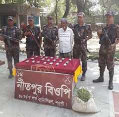 নওগাঁর পোরশা উপজেলার নিতপুর সীমান্তের রংসদা এলাকা থেকে ১৬ বিজিবি নিতপুর ক্যাম্পের টহলরত সদস্যরা ১ হাজার ৯৮০পিস ভারতীয় ট্যাপেন্টাডল ট্যাবলেট সহ ইব্রাহীম হোসেন জুল্লু (৫২) নামে এক মাদক ব্যবসায়ীকে আটক করেছেন। সে নিতপুর চকবিষ্ণুপুর কাঁটাপুকুর গ্রামের মৃত সবুর উদ্দিনের ছেলে। ১৬ বিজিবি নিতপুর ক্যাম্পের কোম্পানি কমান্ডার সুবেদার আজিজুল ইসলাম জানান, বুধবার সকাল সাড়ে ৮টায় সীমান্তের ২৩১ নং পিলারের বাংলাদেশের অভ্যন্তরে তাকে আটক করা হয়। সে অভিনব কায়দায় ঘাঁস ভর্তি বস্তায় করে ভারত থেকে ট্যাপেন্ডাডল ট্যাবলেট গুলি বাংলাদেশে নিয়ে আসছিল। এ সময় তার নির্দেশনায় টহল কমান্ডার হাবিলদার ওবাইদুর রহমান সঙ্গীয় ফোর্সসহ ইব্রাহীম হোসেন জুল্লুকে আটক করা হয়। আটক ট্যাবলেটগুলির মুল্য ১ লক্ষ ৯৭ হাজার টাকা বলে তিন জানান। আটক ইব্রাহীমকে পোরশা থানায় হস্তান্তর করা হয়েছে এবং তার বিরুদ্ধে থানায় মাদক আইনে মামলা হয়েছে।