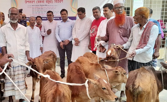 পাবনার সুজানগরে বিকল্প কর্মসংস্থান সৃষ্টির লক্ষে উপজেলা মৎস্য অফিসের উদ্যোগে এবং ইলিশ সম্পদ উন্নয়ন ও ব্যবস্থাপনা প্রকল্পের আওতায় জেলেদের মাঝে বকনা বাছুর গরু বিতরণ করা হয়েছে। গত বুধবার দুপুরে উপজেলা পরিষদ চত্বর হতে স্থানীয় সংসদ সদস্য আহমেদ ফিরোজ কবির উপজেলার ১৫জন জেলের মাঝে ওই বাছুর গরু বিতরণ করেন। উপজেলা নির্বাহী কর্মকর্তা মোঃ তরিকুল ইসলামের সভাপতিত্বে বাছুর বিতরণ অনুষ্ঠানে বিশেষ অতিথি হিসেবে উপস্থিত ছিলেন উপজেলা চেয়ারম্যান শাহীনুজ্জামান শাহীন, পৌর মেয়র রেজাউল করিম রেজা, জেলা মৎস্য বিভাগের সিনিয়র সহকারী পরিচালক মোঃ ওমর আলী ও সুজানগর থানার অফিসার ইনচার্জ আবদুল হান্নান। এতে আরো উপস্থিত ছিলেন উপজেলা ভাইস চেয়ারম্যান জিয়াউর রহমান কল্লোল, উপজেলা মৎস্য কর্মকর্তা নূর কাজমীর জামান খান ও পৌর আওয়ামী লীগের সভাপতি ফেরদৌস আলম খান ফিরোজ।