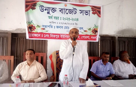 নওগাঁর পোরশা উপজেলার ১নং নিতপুর ইউনিয়ন পরিষদের ২০২৩-২০২৪ অর্থবছরের উন্মুক্ত বাজেট ঘোষনা করা হয়েছে। বৃহস্পতিবার সংশ্লিষ্ট ইউপি মিলনায়তনে বাজেট ঘোষনা সভায় সভাপতিত্ব করেন চেয়ারম্যান আলহাজ¦ এনামুল হক। এ সময় ইউপি প্যানেল চেয়ারম্যান রফিকুল ইসলাম, সদস্য আবদুল হামিদ, আবদুল হাকিম, আকবর হোসেন, জাকারিয়া, জাইদুল ইসলাম সহ স্থানীয় গন্যমান্য ব্যাক্তিবর্গ উপস্থিত ছিলেন। বাজেট ঘোষনা করেন ইউপি সচিব মনিরুজ্জামান। বরাদ্ধকৃত অর্থ ইউনিয়ন পরিষদের রাজস্ব ও উন্নয়ন হতে ৪ কৌটি ৯৬ লক্ষ ১৪ হ্জাার ৬৫৪ টাকা আয় এবং বিভিন্ন খাতে ৪ কৌটি ৯৫ লক্ষ ৯০ হাজার ৬৫৪ টাকা ব্যায় দেখানো হয়েছে। উদ্বৃত্ত দেখানো হয়েছে ২৪ হাজার টাকা।