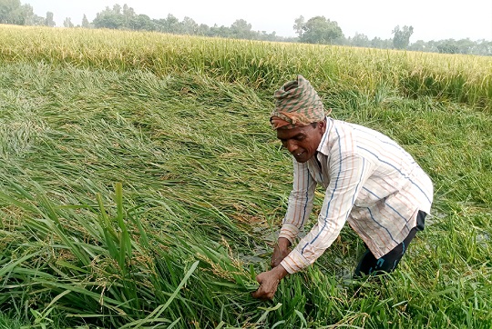 এই চাষির ধান কাটার ছবি তুলতে দেখে আশেপাশের কয়েকজন চাষি ভীড় জমালেন। তারা শুনালেন তাদের বিপর্যয়ের কথা। অলংকারপুর গ্রামের মৃত আমজাদ হোসেনের ছেলে চাষি আনোয়ার হোসেন জানালেন, ১২ বিঘা জমিতে গোল্ডেন জাতের ধান লাগিয়েছিলেন তিনি। এরমধ্যে ৪ বিঘা জমির ধান নুয়ে পড়েছে। ইতিমধ্যেই নুয়ে পড়া দেড় বিঘা জমির কাঁচা ধান তিনি কেটেছেন। বিঘাপ্রতি ফলন হয়েছে ২৫ মণ। কিন্তু ধান পুরোপুরি পাকলে ৩০ থেকে ৩২ মণ ফলন হতো। তিনি অভিযোগ করে বললেন, এত জমির ধানগাছ নুয়ে পড়ে থাকলেও কৃষি বিভাগের কেউ তাদের সাথে কোন যোগাযোগ করেননি, বা তাদেরকে কোন পরামর্শও দেননি।
