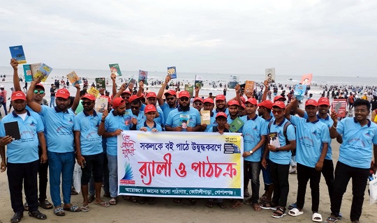 বই পড়ার জন্য সকল বয়সের পাঠকদের উদ্বুদ্ধ করতে সমুদ্র সৈকতে শোভাযাত্রা করেছে গোপালগঞ্জের কোটালীপাড়া উপজেলার জ্ঞানের আলো পাঠাগার নামে একটি স্বেচ্ছাসেবী সংগঠন।