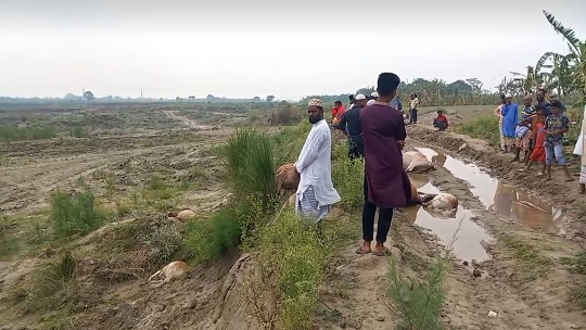 স্থানীয়রা জানান, সজিব প্রতিদিন বাবার খামারের গরু নিয়ে কামালপুরের প্রত্যন্ত চরে পতিত জমির ঘাস খাওয়াতে যান। প্রতিদিনের মত মঙ্গলবার সকালে বাড়িতে থাকা খামারের ৪১ টি গরু নিয়ে কামালপুরের চরের উদ্দেশে বের হয়ে যায়। সন্ধার দিকে বাড়িতে ফিরে আসার সময় হঠাৎ বৃষ্টির সঙ্গে ব্যাপক বজ্রপাত শুরু হলে ১৪ টি গরুসহ সে ঘটনাস্থলেই মারা যান।