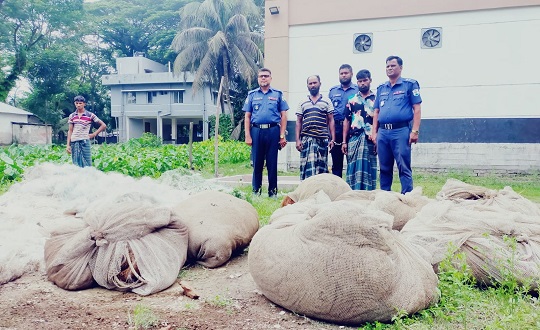 সুত্র জানায়, কালাইয়া বন্দর নৌ পুলিশ ফাড়ির ইনচার্জ পরিদর্শক মো. লুৎফর রহমানের নেতৃত্বে বৃহস্পতিবার দিবাগত রাতে তেঁতুলিয়া নদীতে টহলে নামেন। রাত দেরটার দিকে টহলরত পুলিশ দেখতে পায় নদীর চরফেডারেশন পয়েন্টে অবৈধ জাল ফেলে মাছ শিকার করছে কয়েকজন জেলে। এরপড় পুলিশ দুই জেলেকে আটক করলেও এক জেলে কৌশলে পালিয়ে যায়। এ সময় অভিযুক্ত জেলেদের কাছ থেকে ৬শ মিটার অবৈধ কারেন্ট জাল, বেহুন্দি জাল ৮টি ও মাছ ধরার কাজে ব্যবহÍত একটি ইঞ্জিন চালিত নৌকা জব্দ করা হয়।