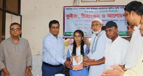 নওগাঁর ধামইরহাটে জাতির পিতা বঙ্গবন্ধু শেখ মুজিবুর রহমানের জুলিও কুরি শান্তি পদপ্রাপ্তির ৫০ বছর পূর্তি উদযাপন উপলক্ষে কুইজ, চিত্রাংকন প্রতিযোগিতা ও আলোচনা সভা অনুষ্ঠিত হয়েছে। উপজেলা প্রশাসনের আয়োজনে ২৮ মে সকাল ১০টায় উপজেলা পরিষদ হলরুমে ইউএনও মো. আরিফুল ইসলামের সভাপতিত্বে আলোচনা সভায় বক্তব্য প্রদান করেন উপজেলা আওয়ামী লীগের সভাপতি ও সাবেক উপজেলা চেয়ারম্যান মো. দেলদার হোসেন, সম্পাদক ও সরকারি এম এম কলেজের প্রাক্তন অধ্যক্ষ প্রফেসর মো.শহিদুল ইসলাম, উপজেলা ভাইস চেয়ারম্যানের সোহেল রানা, প্রাণি সম্পদ কর্মকর্তা ফরহাদ হোসেন, উপজেলা কৃষি সম্প্রসারণ কর্মকর্তা কৃষিবিদ আসাদুজ্জামান আসাদ, মৎস্য কর্মকর্তা, আইয়ুব আলী, যুব উন্নয়ন কর্মকর্তা কামরুজ্জামান সরদার, মহিলা বিষয়ক কর্মকর্তা মিজানুর রহমান, মাধ্যমিক শিক্ষা অফিসার জুলফিকার আলী শাহ, উপজেলা খাদ্য নিয়ন্ত্রক মামুন অর রশীদ, ওসি তদন্ত আবদুল গনি, ভারপ্রাপ্ত উপজেলা সমাজসেবা কর্মকর্তা এ টি এম ফসিউল আলম, অ্যাকাডেমিক সুপারভাইজার কাজল কুমার সরকার, পল্লী উন্নয়ন কর্মকর্তা রামানন্দ সরকার, ভারপ্রাপ্ত পরিবার পরিকল্পনা কর্মকর্তা বেদারুল ইসলাম প্রমুখ। আলোচনা শেষে কুইজ প্রতিযোগিতা ও চিত্রাংকন প্রতিযোগিতায় অংশগ্রহণকারী বিজয়ীদের মাঝে পুরস্কার বিতরণ করা হয়।