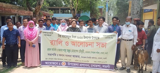 নওগাঁর পোরশায় বিশ্ব তামাকমুক্ত দিবস উপলক্ষে র্যালি ও আলোচনা সভা অনুষ্ঠিত হয়েছে। এ উপলক্ষে বুধবার সকালে উপজেলা প্রশাসনের আয়োজনে উপজেলা পরিষদ চত্বর থেকে একটি বর্ণাঢ্য র্যালি বের হয়ে বিভিন্ন সড়ক প্রদক্ষিণ শেষে একই স্থনে গিয়ে শেষ হয়। পরে উপজেলা পরিষদ মিলনায়তনে এক সংক্ষিপ্ত আলোচনা সভায় সভাপতিত্ব করেন ইউএনও সালমা আক্তার। এময় ভাইস চেয়ারম্যান কাজীবুল ইসলাম ও মমতাজ বেগম, থানা অফিসার ইনচার্জ জহুরুল ইসলাম, শিক্ষা কর্মকর্তা সামশুল ইসলাম, ইউআরসি ইন্সিট্রাক্টর কামরুজ্জামান সরদার, প্রকল্প বাস্তবায়ন কর্মকর্তা দোস্তদার হোসেন, প্রানী সম্পদ কর্মকর্তা আব্দুল্লাহ আল মামুন সহ কর্মকর্তাবৃন্দ উপস্থিত ছিলেন।
