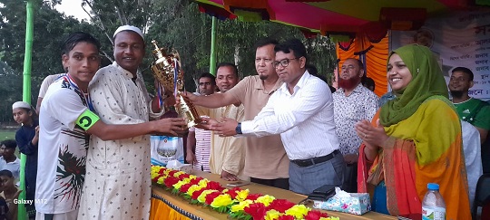 খেলা শেষে চ্যাম্পিয়ন ও রানার্সআপ দলকে ট্রফি প্রদান করেন,উপজেলা পরিষদ চেয়ারম্যান মো: বাকি বিল্লাহ ও উপজেলা নির্বাহী কর্মকর্তা (ইউএনও) মোহাম্মদ নাহিদ হাসান খান।