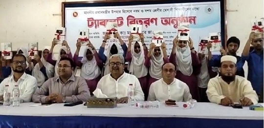 কুষ্টিয়ার দৌলতপুর উপজেলার বিভিন্ন শিক্ষা প্রতিষ্ঠানে অধ্যায়নরত মেধাবী শিক্ষার্থীদের মধ্যে মাননীয় প্রধানমন্ত্রীর দেয়া উপহারের ট্যাব বিতরণ করা হয়েছে। উপজেলা প্রশাসন ও পরিসংখ্যান অফিস এর আয়োজনে বুধবার সকাল ১০ টায় উপজেলা পরিষদ মিলনায়তনে উপজেলার বিভিন্ন শিক্ষা প্রতিষ্ঠানে নবম ও দশম শ্রেণীতে অধ্যায়নরত মেধাবী শিক্ষার্থীদের হাতে এ ট্যাব তুলে দেয়া হয়। ভারপ্রাপ্ত উপজেলা নির্বাহী কর্মকর্তা মো. শাহীদুল ইসলামের সভাপতিত্বে ট্যাব বিতরণ অনুষ্ঠানে প্রধান অতিথি হিসাবে উপস্থিত ছিলেন সংসদ সদস্য সরওয়ার জাহান বাদশাহ। বিশেষ অতিথি হিসাবে উপস্থিত ছিলেন, উপজেলা চেয়ারম্যান এজাজ আহমেদ মামুন। এ সময় আরো উপস্থিত ছিলেন, ভাইস চেয়ারম্যান সাকির আহমেদ, মহিলা ভাইস চেয়ারম্যান সোনালী খাতুন, প্রাণী সম্পদ কর্মকর্তা ডাঃ মাহমুদুল হাসান, কামাল হোসেন, প্রমুখ।