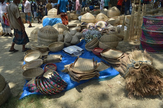 নওগাঁর আত্রাই উপজেলায় দিন দিন হারিয়ে যাচ্ছে বাঁশ ও বেতের তৈরি বিভিন্ন পন্য সামগ্রী, বাজাওে প্লাষ্টিক, মেলামাইন ও স্টিলের তৈরি পণ্যের দাপটে হারিয়ে যাচ্ছে ওই পণ্য, ফলে এসব পেশার সাথে জড়িত মানুষগুলোকে আর্থিক অনটনের মধ্যে দিয়ে দিন অতিবাহিত করতে হচ্ছে, নিজ পেশার সাথে টিকতে না পেরে ভিন্ন পেশায় চলে গেছে উপজেলার পাঁচ শতাধিক শিল্পের কারিগর, পুঁজি স্বল্পতা, বাঁশ ও বেতের উৎপাদন হ্রাস, আর্থিক অসচ্ছতা, উপকরণের অভাবেই আজ বিলুপ্তির পথে। ঐতিহ্যবাহী বাঁশ বেত শিল্প, সারা দেশের মত একসময় ব্যাপক প্রচলন ছিল বাঁশের তৈরি কুলা, ঝুড়ি, চাটাই, হাঁস মুরগির খাঁচা, বেতের চেয়ার, ধামা, চালুনি, খলই, হাতপাখা, কিন্তু বাজারে প্লাষ্টিক, মেলামাই ও স্টিলের তৈরি বিভিন্ন সামগ্রীর চাগিদা বেড়ে যাওয়ায় বাঁশ ও মাটির তৈরি জিনিষগুলো প্রায় হারিয়ে যেতে বসেছে। উপজেলার কালিকাপুর, তিলাবাদতুরি, জামগ্রাম, নওদুলী, ঝনঝনিয়া, ব্রজপুরসহ আরও কয়েকটি এলাকর বংশপরস্পরায় বাঁশ ও বেত শিল্পের সঙ্গে জড়িত ছিল প্রায় পাঁচশতাধিক পরিবার। কিন্তু বতমানে বেশিরভাগই পরিবারের সদস্যরাই পেশা বদল করে জীবিকা নিবাহ করছেন। নিত্য নতুন প্রয়োজনীয় দ্রব্য সামগ্রী তৈরি করে থাকেন যা উপজেলার বিভিন্ন হাচ-বাজারে এবং গ্রামগঞ্জে কাঁধে করে ফেরি করে বিক্রি করে থাখে, এমনকি তৈরি এসব কুটির শিল্প সামগ্রী বেশ কয়েকটি দেশে যাচ্ছে। বৃহস্পতিবার (২০ জুলাই) আহসানগঞ্জ ইউপি’র ঐতিহ্যবাহী আহসানগঞ্জ হাট সরেজমিনে গিয়ে দেখা যায়, সিংসাড়া গ্রামের আবদুল জলিল, ভাদঘরপাড়া গ্রামের ইনতাজ আলী, মিজাপুর গ্রামের শরিফুল ইসলাম ও নওদুলী গ্রামের ব্যবসায়ী শাহাদত হোসেন জানান, একসময় তাদের কাছে দশ-বারো করে বাঁশ ও বেত শিল্পের কারিগর ছিল। তধনকার দিনে একজন কারিগরের বেতন ছিল প্রতিদিন দুই শত থেতে আড়াইশত টাকা। এখনকার দিনে সে কারিগরের বেতন দিতে হয় চার’শ থেকে পাঁচ শত টাকা। তাও সিজনের সময় পাওয়া যায় না, তারা আরো জানান, কাঁচামালের দাম বেড়ে যাওয়ায় বাঁশ ও বেতের তৈরি জিনিসপত্রের দাম বাড়ছে। আগে একচি বাঁশের দাম ছিল পঞ্চাশ থেকে ষাইট টাকা, সেখানে এখন প্রতিটি বাঁশ কিনতে দুই শত থেকে তিনশত টাকায়, আর নির্বিচারে বন জঙ্গল উজার হওয়ার ফলে বেত গাছ খুব একটা চোখে পড়ে না। তাই এ শিল্পের সাথে জড়িত পরিবারগুলো আর্থিক অনাটনের মধ্যে দিন অতিবাহিত করছে। উপজেলার নওদুলি হাট এলাকার শশীকান্ত জানান কয়েকবছর হলো পৈত্রিক পেশা ছেড়ে দিয়ে এখন দিন মজুরি কুরছেন। তিনি বলেন বেত শিল্পে টাকা বিনিয়োগ করে খুব একটা লাভ হতো না। এখন গতর খেটে কাজ করি, দিনবাদে চার-পাঁচ’শ রোজগার হয়। পরিবার নিয়ে খেয়ে পড়ে চলছি। তবে যে দিন কাজ না থাকে সে দিন অনেক কষ্ট হয়। তবে আগের চেয়ে অনেক ভালো আছি