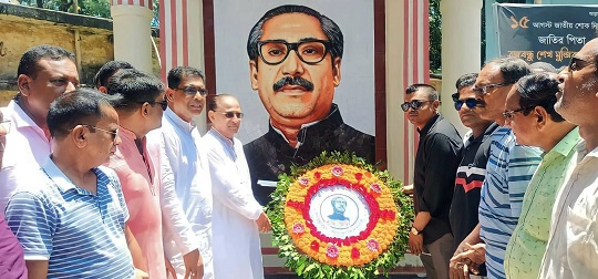 পাবনার সুজানগরে বাংলার অবিসংবাদিত নেতা স্বাধীনতা এবং মুক্তিযুদ্ধের প্রাণপুরুষ জাতির জনক বঙ্গবন্ধু শেখ মুজিবুর রহমানের ম্যুরালে পুষ্পার্ঘ্য অর্পণ করেছেন বাংলাদেশ আওয়ামী লীগের প্রেসিডিয়াম সদস্য মোঃ আবদুর রহমান। মঙ্গলবার সকালে শোকাবহ আগস্টের প্রথম দিন সুজানগর উপজেলা পরিষদের অভ্যন্তরে স্থাপিত বঙ্গবন্ধুর ওই ম্যুরালে তিনি পুষ্পার্ঘ্য অর্পণ করেন। এ সময় অন্যানের মধ্যে উপস্থিত ছিলেন সুজানগর উপজেলা পরিষদের চেয়ারম্যান ও উপজেলা আওয়ামী লীগের সাধারণ সম্পাদক শাহীনুজ্জামান শাহীন, সুজানগর পৌর মেয়র ও উপজেলা আওয়ামী লীগের সাবেক সাংগঠনিক সম্পাদক রেজাউল করিম রেজা, আওয়ামী লীগ নেতা মাহমুদুজ্জামান মানিক, ইউনুস আলী বাদশা, উপজেলা আওয়ামী যুবলীগের সভাপতি সরদার রাজু আহমেদ, পৌর আওয়ামী লীগের সভাপতি ফেরদৌস আলম ফিরোজ ও স্বেচ্ছাসেবক লীগের আহ্বায়ক আমিরুল ইসলাম।