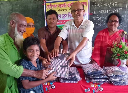 মণিরামপুরে একটি বিদ্যালয়ে ৪৭ জন গরীব মেধাবী শিশু শিক্ষার্থীদের মাঝে ব্যক্তি উদ্যোগে বিনামূল্যে পোষাক বিতরণ করা হয়েছে। স্থানীয় ইউপি সদস্য অজয় কুমার রায় সোমবার সকালে তার ভাতার টাকা দিয়ে এই পোষাকগুলো বিতরণ করেছেন বলে প্রধান শিক্ষক জানিয়েছেন। এদিকে পোষাকগুলো হাতে পেয়ে কোমলমতি শিশু শিক্ষার্থীরা আনন্দে মাতোয়ারা।