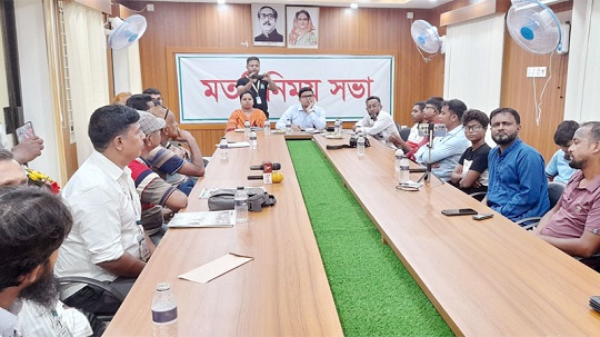 মত বিনিময় সভায় বক্তব্য রাখেন উপজেলা প্রেসক্লাব চিতলমারী এর সভাপতি মোঃ একরামুল হক মুন্সী, চিতলমারী প্রেসক্লাবের সভাপতি মুন্সি দেলোয়ার হোসেন, সাংবাদিক পংকজ মন্ডল, শফিকুল ইসলাম সাফা, মীর মাসুদ হুসাইন, এসএস সাগর, অরুন সরকার, প্রদীপ মন্ডল, তাওহিদুর রহমান বাবু, রিয়াজুল ইসলাম রিয়াদ মুন্সী, জুড়ান চন্দ্র মন্ডল সহ উপস্থিত ছিলেন বিভিন্ন গনমাধ্যমের সাংবাদিক বৃন্দ।