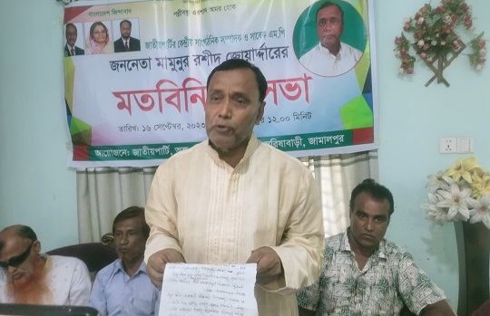 আসন্ন দ্বাদশ জাতীয় সংসদ নির্বাচনের প্রস্তুতি গ্রহন উপলক্ষে জাতীয় পার্টি জামালপুর-৪ সরিষাবাড়ী আসনের সর্বস্তরের নেতাকর্মীদের সাথে মতবিনিময় সভা অনুষ্ঠিত হয়েছে। শনিবার দুপুরে উপজেলা জাতীয় পার্টি, অঙ্গ ও সহযোগী সংগঠনের আয়োজনে পৌরসভার সাতপোয়া এলাকায় সাবেক এমপি মামুনুর রশীদ জোয়ার্দারের বাস ভবনে এ মতবিনিময় সভা অনুষ্ঠিত হয়। মহাদান ইউনিয়ন জাতীয় পার্টির সভাপতি মাহবুবুর রহমান মাষ্টারের সভাপতিত্বে এতে প্রধান অতিথি হিসেবে বক্তব্য রাখেন কেন্দ্রীয় জাতীয় পার্টির সাংগঠনিক সম্পাদক সাবেক এমপি মামুনুর রশীদ জোয়ার্দার। এ সময় উপস্থিত ছিলেন, আওনা ইউনিয়ন জাতীয় পার্টির সভাপতি ডাঃ মোঃ নজরুল ইসলাম, ডোয়াইল ইউনিয়ন জাতীয় পার্টির সভাপতি মোহাম্মদ হানিফ খাঁ, তিতপল্লা ইউনিয়ন জাতীয় পার্টির যুগ্ম আহ্বায়ক ডঃ শফিকুল ইসলাম,উপজেলা যুব সংহতির সাবেক সভাপতি আসাদুজ্জামান, জাতীয় ছাত্র সমাজ কেন্দ্রীয় কমিটির সদস্য রাইসুল ইসলাম তনু, উপজেলা ছাত্র সমাজের সাধারণ সম্পাদক কামরুল হাসান রুবেল, কামরাবাদ ইউনিয়ন যুব সংহিতর সাধারণ সম্পাদক সোনা মিয়া প্রমুখ। মতবিনিময় সভায় নেতৃবৃন্দ বলেন, জাতীয় পার্টি অতীতের যে কোনো সময়ের চেয়ে সাংগঠনিক অবস্থা ভালো। জাতীয় পার্টি সর্বদাই নির্বাচন মুখি দল। গণতন্ত্র রক্ষা সমুন্নত রাখতে জাতীয় পার্টি আগামী সংসদ নির্বাচনের জন্য প্রস্তুত রয়েছে। আগামী দ্বাদশ সংসদ নির্বাচনে জামালপুর -৪ সরিষাবাড়ি আসনে মামুনুর রশীদ জোয়ার্দারকে দল নমিনেশন দিলে বিপুল ভোটে জয়লাভ করবেন বলে তারা বলেন।