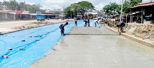 নওগাঁর মহাদেবপুরে সড়ক প্রশস্তকরণ কাজ দ্রুত এগিয়ে চলেছে। গতবছর শুরু হওয়া সড়ক ও জনপথ বিভাগের এ বিশাল প্রকল্প বাস্তবায়িত হলে যোগাযোগের ক্ষেত্রে এক নতুন দিগন্তের উন্মেষ ঘটবে। পাল্টে যাবে এলাকার সড়কের চেহারা। এমনটিই জানিয়েছেন সংশ্লিষ্টরা। সওজ নওগাঁ থেকে আত্রাই, বদলগাছী, মহাদেবপুর আর মান্দা থেকে নিয়ামতপুর পর্যন্ত ছয়টি সড়কে মোট ১৪টি প্যাকেজে আঞ্চলিক মহাসড়ক উন্নয়নের প্রকল্প বাস্তবায়ন করছে। এজন্য বরাদ্দ করা হয়েছে এক হাজার একশ’ কোটি টাকা। মহাদেবপুর অংশে ব্যয় হবে একশ’ ২০ কোটি টাকা। এরমধ্যে রয়েছে নওগাঁ-মহাদেবপুর-পতœীতলা সড়কের চৌমাসিয়া নওহাটা মোড় থেকে আখেড়া পর্যন্ত, আখেড়া থেকে কালুশহর মোড় পর্যন্ত এবং কালুশহর মোড় থেকে পতœীতলা বিজিবি ক্যাম্প পর্যন্ত প্রতি প্যাকেজে ৯ থেকে ১০ কিলোমিটার। এ ছাড়া মহাদেবপুর কুঞ্জবন থেকে ছাতুনতলী নতুনহাট পর্যন্ত ০ থেকে ৯ কিলোমিটার। চৌমাসিয়া নওহাটা মোড় থেকে পতœীতলা বিজিবি ক্যাম্প পর্যন্ত সড়কের স্বাভাবিক চওড়া হবে ১০ দশমিক ৩ মিটার অর্থাৎ ৩৪ ফুট। তবে মহাদেবপুর উপজেলা সদর এলাকায় বচনা ব্রিজের পশ্চিমে চাউল কল মালিক গ্রুপের অফিস থেকে ঘোষপাড়ার মোড় আলফা ক্লিনিকের সামনে পর্যন্ত মোট এক কিলোমিটার ৩০০ মিটার সড়ক হবে আরসিসি ঢালাই। আর চওড়া হবে ৬৮ ফুট। মাঝখানে থাকবে আইল্যান্ড। ইতিমধ্যেই এর ৬০০ মিটার ঢালাই সম্পন্ন হয়েছে। বাকি ৭০০ মিটারের কাজ চলছে। মহাদেবপুর কুঞ্জবন থেকে ছাতুনতলী নতুন হাট পর্যন্ত সড়ক হবে ১৮ ফুট চওড়া। আর বিভিন্ন বাজার এলাকায় হবে ২৪ ফুট আরসিসি ঢালাই। এসব সড়কে প্রয়োজনীয় স্থানে নতুন ব্রিজ ও কালভার্টও নির্মাণ করা হবে। এখন উপজেলা সদরের বাসস্ট্যান্ডে ঐতিহ্যবাহী মাছের মোড়ের মাছের ফোয়ারা আর চারমাথা বকের মোড়ের বকের ফোয়ারা আর থাকছেনা। এ দুটি স্থানে তৈরি হবে নওহাটা মোড়ের মত বিশাল ইন্টারসেকশন। আগামী দেড় বছরের মধ্যে এগুলোর কাজ শেষ হবে। এগুলো সম্পন্ন হলে উপজেলা সদরের উন্নয়নের চেহারা পাল্টে যাবে। সংশ্লিষ্টরা জানালেন, এলাকার এমপি আলহাজ¦ ছলিম উদ্দিন তরফদার সেলিম এই বিশাল উন্নয়ন কাজ আরও উন্নত করার উদ্যোগ গ্রহণ করেছেন। তাঁর তৎপরতায় ৩৪ ফুট চওড়া ঢালাই সড়ক বচনা ব্রিজ এলাকা থেকে বাড়িয়ে আখেড়া ওসমান গণির বয়লারের ওপার কালভার্ট পর্যন্ত এবং ঘোষপাড়ার মোড় আলফা ক্লিনিকের সামনে থেকে বাড়িয়ে বরেন্দ্র মোড় পর্যন্ত বর্ধিত করার চেষ্টা চলছে। এ ছাড়া উপজেলা সদরের জলাবদ্ধতা নিরষনের লক্ষ্যে মহাসড়কের পাশ দিয়ে নতুন ড্রেনেজ ব্যবস্থাও সংযোগের উদ্যোগ নিয়েছেন তিনি। সরেজমিনে উপজেলা সদরের বুলবুল সিনেমা হল এলাকায় গিয়ে দেখা যায়, সেখানে পানি নিষ্কাশনের জন্য একটি কালভার্ট নির্ম