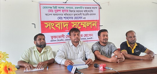 হাইকোর্টের আদেশ অমান্য করায় রাজশাহীর বাগমারার মোহনগঞ্জ ডিগ্রি কলেজের অধ্যক্ষের (ভারপ্রাপ্ত) বিরুদ্ধে সংবাদ সম্মেলন করেছেন একই কলেজের ইংরেজি বিভাগের প্রভাষক শাহাদাত হোসেন। সোমবার (২৩ অক্টোবর) দুপুরে উপজেলার মুগাইপাড়া বাজারে সংবাদ সম্মেলন করেন তিনি।