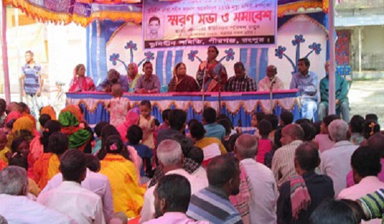 ভূমিহীন নেতা জয়নাল আবেদীনের ২৩ তম মৃত্যু বার্ষিকী উপলক্ষে শুক্রবার বিকেলে পাঁচগাছী ইউনিয়ন পরিষদ চত্বরে স্মরননভা অনুষ্ঠিত হয়। এ উপলক্ষে গৃহীত কর্মসূচির মধ্যে ছিল জয়নালের স্মৃতি স্তম্ভে পুষ্পার্ঘ্য অর্পণ ও ১ মিনিট নিরবতা পালন,জাতীয় সংগীত ও জাতীয় পতাকা উত্তোলন ও আলোচনা সভা। ভূমিহীন নেত্রী মাহামুদা বেগমের সভাপতিত্বে অনুষ্ঠিত সভায় সভায় বক্তব্য রাখেন ভূমিহীন নেতা মাহাবুবর রহমান, আবদুল হালিম আকন্দ,আদিবাসী নেত্রী মিনা বাড়া,মমতা রানী, খয়বর হোসেন,আব্দুল গফুর মিয়া সাবেক ইউপি সদস্য আজিজার রহমান এবং নিজেরা করি সংস্থার মামুনূর রশিদ। বক্তারা শহীদ জয়নালের চেতনায় ঐক্যবদ্ধ হয়ে ভূমিহীন শ্রমজীবি মানুষের অধিকার আদায়ের দাবি তুলে -খাস জমি জলাশয়ে ভূমিহীনদের অধিকার নিশ্চিত করা,কৃষি জমি রক্ষা, ভূমিহীনতা রোধ,নারীর প্রতি সহিংসতা বন্ধ,মৌলবাদ,সাম্প্রদায়িকতা ও সন্ত্রাস রুখতে হবে,বামনীর বিলের পার্শ্ববতী কৃষি জমির ফসল রক্ষায় পানি নিষ্কাশনের ব্যবস্থা করন,অর্পিত সম্পত্তি লীজকৃত জমির শর্ত ভংগকারীদের লীজ বাতিল করন দ্রব্য মুল্যের উদ্ধগতি রোধ। সভা শেষে ভূমিহীন সমিতির সাংস্কৃতিক দলের গনসংগীত ও গননাটক ও আদিবাসীদের গান নৃত্য পরিবেশন হয়। স্মরণ সভায় পীরগঞ্জ ও সাদুল্যাপুর উপজেলার সহ¯্রাধিক ভূমিহীন নারী পুরুষ অংশ নেন।