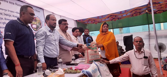 সভা শেষে প্রধান অতিথি কৃষকের হাতে ইউরিয়া সার ২০ কেজি,এমওপি সার ১৫ কেজি,ডিএপি সার ১৫ কেজি,জিংক ১ কেজি,হাইব্রিড ধারের বীজ ( বিআর- ২৯) ১০ কেজি, ৫ প্রকার সবজী বীজ লালশাক,পুইশাক,বেগুন,মিষ্টি কুমড়া ও চাল কুমড়া। সাথে দেয়া হয় একটি টি শার্ট,খাবার প্যাকেট, পানি এবং যাতায়াত বাবদ নগদ একশ করে টাকা।
