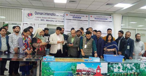 আজ শুক্রবার সকাল ৮টা ৫০ মিনিটে সিলেট ওসমানী আন্তর্জাতিক বিমানবন্দরে অবতরণ করা বিমানের বিজি-২৪৮ ফ্লাইটে এনএসআই, কাস্টমস ও শুল্ক গোয়েন্দাদের সমন্বিত দল অভিযান চালিয়ে এসব সোনা জব্দ করে।