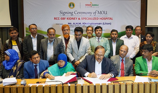 রাজশাহীতে নগরীতে আরসিসি-এসবিএফ কিডনি এ- স্পেশালাইজড হাসপাতাল স্থাপনের লক্ষ্যে সমঝোতা স্মারক (এমওইউ) স্বাক্ষরিত হয়েছে। রোববার (২৪ ডিসেম্বর) দুপুরে নগর ভবনের সিটি হল রুম (এনেক্স) সভাকক্ষে আয়োজিত অনুষ্ঠানে রাজশাহী সিটি কর্পোরেশনের (রাসিক) পক্ষে মেয়র এএইচএম খায়রুজ্জামান লিটন এবং সোনার বাংলা ফাউন্ডেশনের পক্ষে চিফ অপারেটিং অফিসার অবসরপ্রাপ্ত সচিব হোসনে আরা বেগম নিজ নিজ প্রতিষ্ঠানের পক্ষে সমঝোতা স্মারকে স্বাক্ষর করেন। সমঝোতা স্মারক অনুযায়ী রাজশাহী নগরীর ১১নং ওয়ার্ডের হেতেমখা নগর স্বাস্থ্য কেন্দ্র ব্যবহারের জন্য অলাভজনক সেবামূলক প্রতিষ্ঠান সোনার বাংলা ফাউন্ডেশনকে প্রদান করবে রাসিক। প্রথম পর্যায়ে সেখানে স্বল্পমূল্যে উন্নতমানের কিডনি ডায়ালাইসিস সেবা প্রদান করা হবে। পরবর্তীতে সেখানে অত্যাধুনিক বহুল ভবন নির্মাণ, কিডনি ট্রান্সপ্লান্ট ও অন্যান্য স্বাস্থ্যসেবা প্রদান কার্যক্রম পরিচালনা হবে। উভয় পক্ষের প্রতিনিধিদের নিয়ে গঠিত ব্যবস্থাপনা কমিটির মাধ্যমে এর কার্যক্রম পরিচালিত হবে। অনুষ্ঠানে প্রধান অতিথির বক্তব্যে বাংলাদেশ আওয়ামী লীগের সভাপতিম-লীর সদস্য ও রাজশাহী সিটি কর্পোরেশনের মেয়র এএইচএম খায়রুজ্জামান লিটন বলেন, স্বাস্থ্যসেবার ক্ষেত্রে স্থানীয় সরকার প্রতিষ্ঠানসমূহ গুরুত্বপূর্ণ ভুমিকা পালন করে। এরই আলোকে রাজশাহী নগরীকে পরিচ্ছন্ন ও সুন্দর রাখার পাশাপাশি নাগরিকদের স্বাস্থ্য সুরক্ষায় আমরা কাজ করে যাচ্ছি। সেই কাজের অংশ হিসেবে আরসিসি-এসবিএফ কিডনি এ- স্পেশালাইজড হাসপাতাল স্থাপনের এমওইউ স্বাক্ষরিত হলো। এসবিএফ স্বল্প মূল্যে উন্নতমানের কিডনি ডায়ালাইসিস সেবা প্রদান করবে। মানবতার সেবায় সিটি কর্পোরেশনের পক্ষ থেকে তাদেরকে আর্থিকভাবেও সহযোগিতা প্রদান করা হবে। সোনার বাংলা ফাউন্ডেশনের পক্ষে চিফ অপারেটিং অফিসার হোসনে আরা বেগম বলেন, সারাবিশ্বে কিডনি রোগীর সংখ্যা বাড়ছে। রাজশাহীতে সীমিত পরিসরে আমরা কিডনি ডায়ালাইসি সেবা প্রদান করছিলাম। আমাদের জায়গার অভাব ছিল। বিষয়টি মাননীয় মেয়র মহোদয়কে জানানোর পর তিনি আমাদের বিশাল একটা জায়গা দিয়েছেন। সেখানে বৃহৎ পরিসরে স্বল্প মূল্যে উন্নতমানের কিডনি ডায়ালাইসিস সেবা প্রদান করা হবে। ভবিষ্যতে সেখানে হসপিটাল গড়ে তোলা হবে। সেখানে কিডনি ট্রান্সপ্লান্টসহ অন্যান্য স্বাস্থ্যসেবা প্রদান করা সম্ভব হবে। রাসিকের স্বাস্থ্য, শিক্ষা ও পরিবার পরিকল্পনা স্থায়ী কমিটির সভাপতি ও ১৯ নং ওয়ার্ড কাউন্সিলর তৌহিদুল হক সুমনের সভাপতিত্বে অনুষ্ঠানে বক্তব্য রাখেন, রাজশাহী সিটি কর্পোরেশনের সচিব মোবারক হোসেন ও সোনার বাংলা ফাউন্ডেশনের উপদেষ্টা পরিষদের সদস্য মেজর জেনারেল (অব:) জাহাঙ্গ