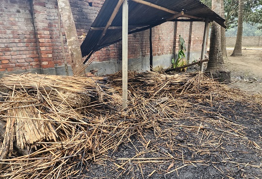 রাজশাহীর চারঘাট উপজেলায় মধ্যরাতে মুক্তার হোসেন নামে এক ব্যবসায়ীর বাড়িতে পেট্রল ঢেলে আগুন দেওয়ার ঘটনা ঘটেছে। সংবাদ পেয়ে চারঘাট ফায়ার সার্ভিস ও স্থানীয়দের যৌথ চেষ্টায় আগুন নিয়ন্ত্রণে আসে। ফলে বড় ধরনের ক্ষয়ক্ষতি থেকে রক্ষা পায়। মঙ্গলবার দিবাগত রাত ২টার দিকে উপজেলার শলুয়া ইউনিয়নের চামটা এলাকার একটি পাকা বাড়িতে এ অগ্নিসংযোগের ঘটনা ঘটে। আগুন দেওয়া বাড়িটির মালিক মুক্তার হোসেন সদ্য শেষ হওয়া জাতীয় নির্বাচনে আ'লীগ মনোনীত নৌকার প্রার্থী শাহরিয়ার আলমের কর্মী হিসাবে এলাকায় কাজ করেছেন। চারঘাট ফায়ার সার্ভিস স্টেশনের টিম লিডার মোতাহার আলী জানান, পেট্রোল দিয়ে আগুন লাগানো হয়েছে। প্রাথমিক অবস্থায় আগুনের বিষয়টি তাদের কাছে নাশকতামূলক কর্মকা- মনে হয়েছে। গোয়ালঘর, রান্নাঘর ও বসতঘর আগুনে ক্ষতিগ্রস্থ হয়েছে বলে জানান তিনি। স্থানীয়রা জানান, রাত আনুমানিক ২টার দিকে আগুনে পোড়ার পটপট শব্দ এবং বৈদ্যুতিক তার বিস্ফোরণের শব্দ শুনতে পেয়ে ওই বাড়িতে ছুটে যান তারা। এ সময় ভেতর থেকে চিৎকার আসছিল। বাহির থেকে বাড়ির দুই গেটই লক করা ছিল। এজন্য ভেতর থেকে কেউ বের হতে পারছিল না। বাড়ির রান্না ঘর ও বসত ঘরের পাশের বেলকনিতে আগুন জ্বলছিল। এলাকাবাসী এসে আগুন নেভানোর চেষ্টা করে। পরে ফায়ার সার্ভিস এসে আগুন নেভাই। ততক্ষণে রান্না ঘরের চালা, কাঠের খড়ি, চাল, ডালসহ প্রয়োজনীয় সব জিনিস পুড়ে যায়। বসত ঘরের বেলকনির পুরো অংশও পুড়ে গেছে এবং পুরো বাড়ি পেট্রোলের গন্ধে সয়লাব হয়ে গেছে। ঘটনার বর্ণনা দিয়ে বাড়িক মালিক মুক্তার হোসেন বলেন, আমার এক তলা বাসায় পরিবারের সবাই থাকি। রাত ঠিক ২টার দিকে আগুন আগুন চিৎকার শুনে আমাদের ঘুম ভেঙে যায়। পরে দেখি দাউ দাউ করে আগুন জ্বলে বেলকনি থেকে ঘরের ভেতরের দিকে আসছে। পেট্রোলের কারণে আগুন দ্রুত ছড়িয়ে পড়ছিল। সবার চিৎকারে আশপাশের মানুষজন ও ফায়ার সার্ভিস এসে আগুন নিয়ন্ত্রণে এনেছে। আগুনে বাড়ির দুইটি বৈদ্যুতিক মিটারও পুড়ে যায় বলেও জানান তিনি। মুক্তার হোসেন অভিযোগ করেন, নৌকার পক্ষে মাঠে নেমে প্রচারণা শুরুর পর থেকেই স্থানীয় কয়েকজন প্রভাবশালী ব্যক্তি আমাকে নানা ভাবে ভয়ভীতি দেখাচ্ছিল। ভোট নিয়ে স্থানীয় এক ইউপি সদস্যসহ কয়েকজনের সাথে ঝামেলাও হয়েছিল। তখন তারা দেখে নেওয়ার হুমকি দিয়েছিল। সেই সব সন্ত্রাসীরাই আমাকে ও পরিবারের সদস্যদের হত্যাসহ আমার বাড়িটি পুড়িয়ে ফেলার চেষ্টা করেছে। অভিযুক্তদের নামগুলো আমি প্রশাসনকে জানিয়েছি। এ ঘটনার সঙ্গে জড়িতদের দ্রুত গ্রেপ্তারের দাবি জানাই। স্থানীয় ইউপি চেয়ারম্যান আবুল কালাম আজাদ বলেন, আমি ঘটনাস্থল পরিদর্শন করেছি। বিষয়টি খুবই উদ্বেগজনক। আগুন নেভাতে একট