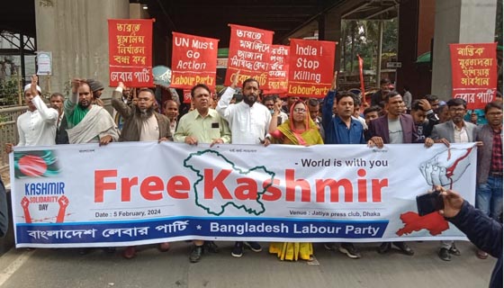 সোমবার বেল ১১ টায় জাতীয় প্রেসেক্লাবের সামনে আয়োজিত মানববন্ধনে তিনি এ কথা বলেন। ‘‘কাশ্মীর সংহতি’’ দিবসে বাংলাদেশ লেবার পার্টি আয়োজিত সংহতি সমাবেশে প্রধান অতিথি ছিলেন তিনি।