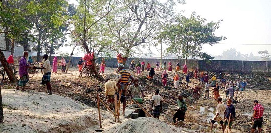 দুর্যোগ ব্যবস্থাপনা ও ত্রাণ মন্ত্রণালয়ের অর্থায়নে ইউজিপি প্রকল্পের আওতায় ৪০ দিনের কর্মসৃজন কর্মসূচির কাজ প্রায় এক মাস আগে শেষ হলেও মজুরির টাকা আজও পাননি শ্রমিকরা। দিনাজপুরের চিরিরবন্দর উপজেলার ১২টি ইউনিয়নের ৩ হাজার ৮৪৫ জন শ্রমিক ৪০ দিন কাজ করেও এখনও মজুরির টাকা না পাওয়ায় ক্ষোভ প্রকাশ করেন। এতে শ্রমিকরা অতিকষ্টে দিনাতিপাত করছেন। উপজেলা প্রকল্প বাস্তবায়ন (পিআইও) কর্মকর্তার কার্যালয় সূত্রে জানা গেছে, গত ১১ নভেম্বর-২০২৩ থেকে ৮ জানুয়ারি-২০২৪ পর্যন্ত উপজেলার ১২টি ইউনিয়নে গ্রামীণ অবকাঠামো সংস্কারের উদ্যোগ গ্রহণ করে সরকার। এ কাজের জন্য ৩ হাজার ৮৪৫ জন শ্রমিক প্রত্যকে দৈনিক ৪০০টাকা মজুরি পাবেন। প্রত্যক ওয়ার্ডে একজন করে সরদার দৈনিক ৪৫০টাকা করে মোবাইল ব্যাংকিংয়ের মাধ্যমে হাজিরা ভাতার টাকা পাবেন। কিন্তু এক মাস অতিবাহিত হলেও মজুরির টাকা না পাওয়ায় হতাশ নিম্নআয়ের শ্রমিকরা। উপজেলার আব্দুলপুর ইউনিয়নের শ্রমিক আইনুদ্দিন বলেন, ‘আমরা গরিব মানুষ, দিন মিলাই দিন খাই। কিন্তু কাজ করে যদি মজুরি না পাই তাহলে কী রকম হয়? কাজ শেষ হওয়ার পর থেকে প্রচন্ড শীতের কারণে বেশ কয়েকদিন কাজ করতে পারি নাই। অনেক কষ্ট করে সংসার চালাতে হচ্ছে।' ফিরোজা খাতুন ফেরো নামে আরেক নারী শ্রমিক বলেন, ‘আমরা গরিব মানুষ। দিনের আয় দিয়ে কষ্ট করে সংসার চালাই। প্রায় দেড় মাস ধরে কষ্ট করে কাজ করে এক টাকাও মজুরি পাইনি। এদিকে, ঠান্ডায় কয়েকদিন কোন কাজ করতে পারি নাই। টাকার অভাবে শীতের কাপড়ও কিনতে পারি নাই। আশা করেছিলাম, কাজ শেষে টাকা পাবো। মানুষের নিকট টাকা ধার করে চাল কিনে ভাত খেয়েছি। সে টাকা পরিশোধ করতে পারছি না। কাজ করেও টাকা পাইনি। কতদিন পরে যে টাকা দেবে তা অফিসাররা ভালো জানে।’ শ্রমিক আনারুল ইসলাম বলেন, ‘আমরা দিনমজুর মানুষ। অন্যের বাড়িতে কাজ করে আমাদের সংসার চলে। আমাদের প্রথম ২০ দিন কাজ করে অর্ধেক টাকা দেয়ার কথা ছিল। কিন্তু টানা ৪০ দিন কাজ করেও আমাদের এক টাকাও মজুরি দেয়নি। এনজিও থেকে ঋণ নিয়েছি। এনজিও’র কিস্তির টাকা দিচ্ছি অন্যের নিকট সুদে টাকা নিয়ে। আমাদের মজুরির টাকা দ্রুত দেয়া হলে আমাদের খুব উপকার হয়।’ কর্মসৃজন প্রকল্পের আব্দুলপুর ইউনিয়নের শ্রমিক সর্দার জাহিদুল ইসলাম বলেন, ‘শ্রমিকরা প্রায় ফোন করে জানতে চান কোনদিন টাকা দেবে। তাদের চাপের কারণে অনেক সময় ফোনই ধরি না। ইউএনও স্যার ও পিআইও স্যারদের নিকট গিয়ে বার বার বলি স্যার শ্রমিকদের মজুরির টাকা কোনদিন দেবেন। স্যারেরা বলেন-তোমাদের বিল করে পাঠিয়ে দেয়া হয়েছে, আসলে দেয়া হবে। কবে নাগাদ বিল পাবো স্যারেরাও সঠিকভাবে বলতে পারে না।’ আব্দুলপুর ইউপি চেয়ারম্যান আলহাজ¦ ময়েনউদ্দিন শাহ্ বলেন, ‘শ্রমিকরা গরিব মা